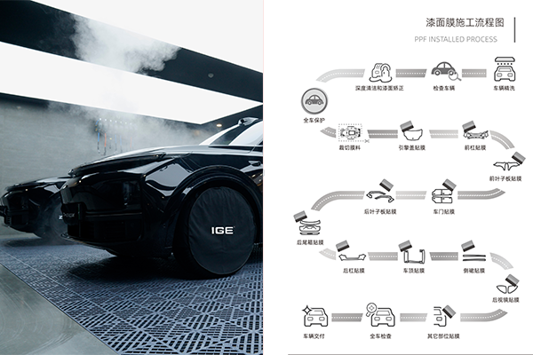 IGE漆面保护膜的雅系列,具有超强的耐污耐腐性能,划痕热修复,同时采用PET辊压工艺,涂层变哑,质感更好。