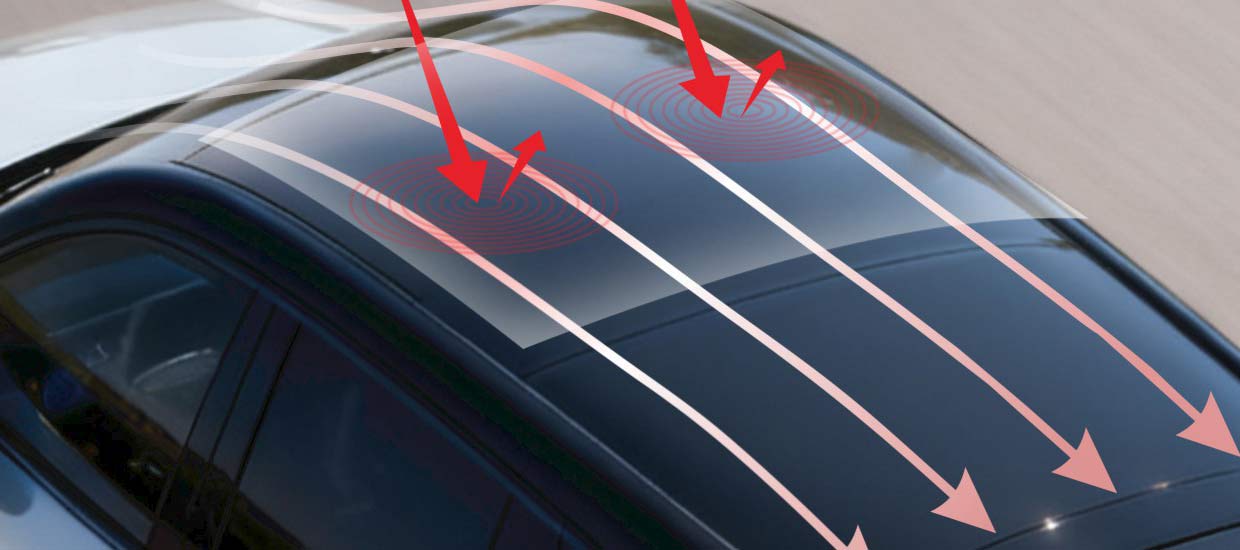阻隔热量,对流散热,保护玻璃,外贴的TPU材质天窗冰甲C70,采用陶瓷材料隔热技术,可有效阻挡太阳光热量,利用空气动力学,通过车辆在行驶中的速度,产生空气对流进行散射,让车顶空间更加舒适,有效缓冲外界沙石或冰雹对天窗的砸击,起到保护作用。